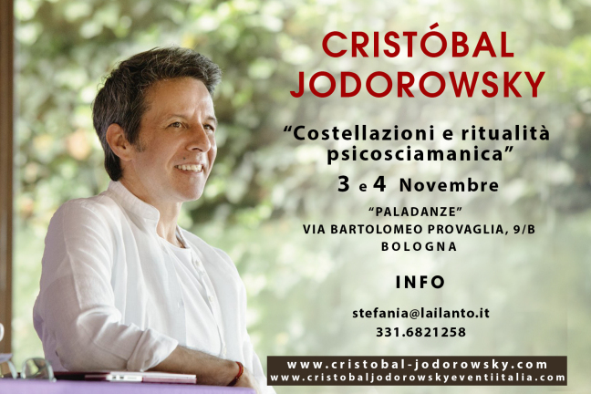 A Bologna il 24 Settembre Cristobal Jodorowsky propone una sessione di consulte individuali con atti psicomagici.L'evento ha un massimo di